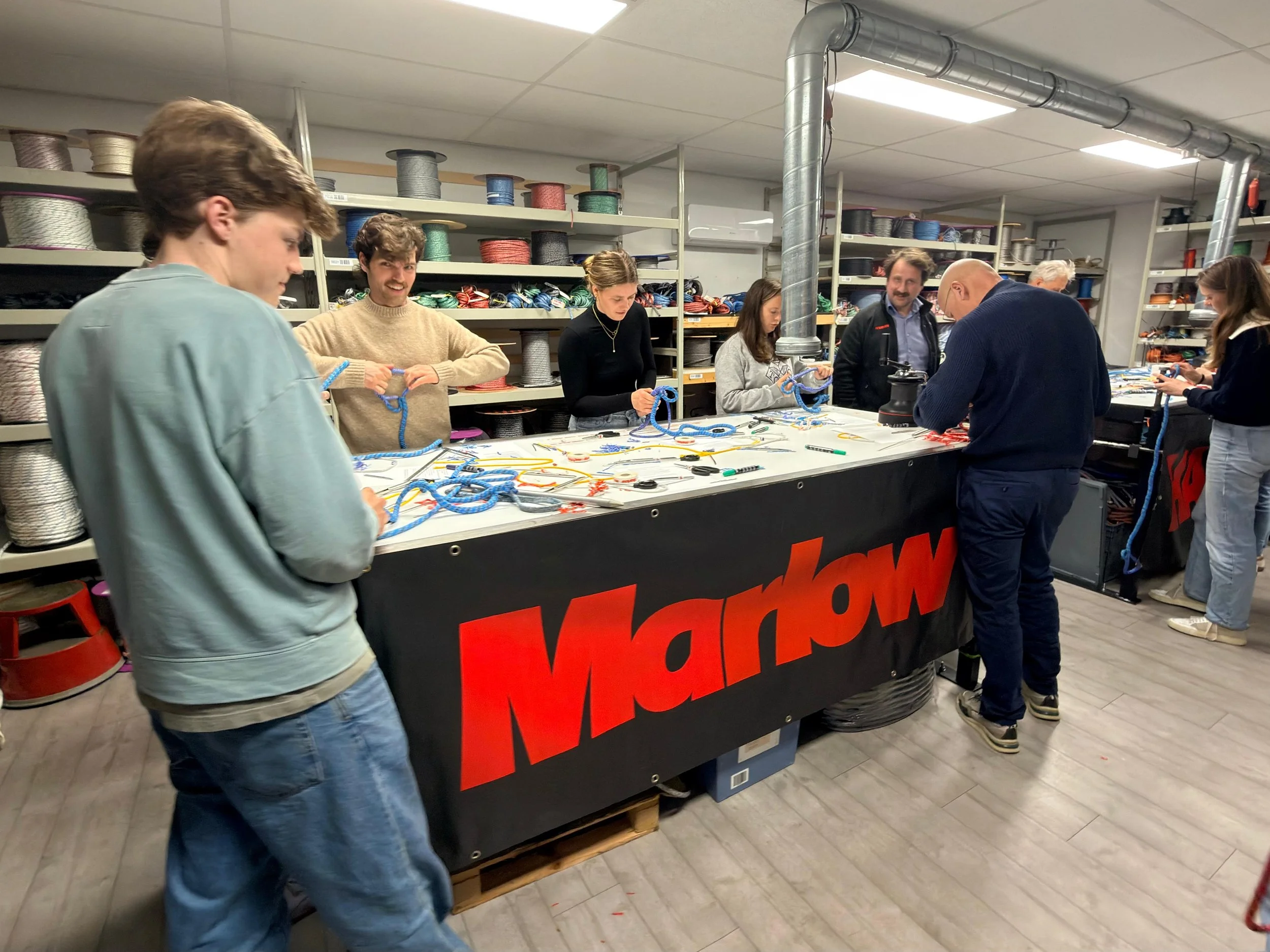Paul Honess legde uit hoe je lijnen op maat bestelt, zowel qua lengte als mantel, en ging dieper in op materiaalkeuzes en lijnconstructies. De aanwezigen kregen unieke inzichten in de fijne kneepjes van topniveau rigging. Specifieke kennis die normaal gesproken alleen voor professionals toegankelijk is, zo levert Marlow lijnen aan de helft van de TP52 super series vloot, mini maxi Bella Mente, SailGP en veel Imoca’s. Paul nam de aanwezige community-leden mee in de specifieke problemen waar deze boten tegenaan lopen en hoe ze daar met verschillende blends en custom mantels oplossingen voor hebben verzonnen.